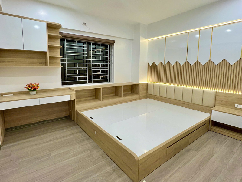 - Bề mặt: phủ Melamine chống xước, chống ẩm làm tăng độ bền cho sản phẩm. Mầu sắc đơn giản phù hợp với ngôi nhà Việt